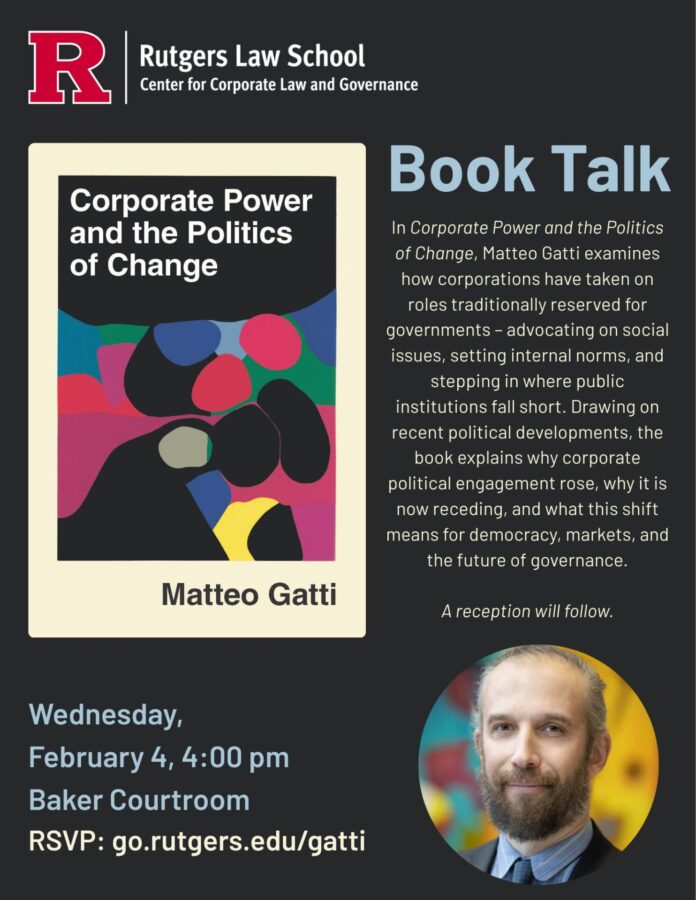 Drawing on corporate law and insights from economics, finance, marketing, and political science, the book assesses the risks corporate governing poses to democratic accountability while questioning the assumption that firms can—or should—substitute for public institutions. The talk will explore these dynamics and consider what the rise and retreat of corporate political engagement reveal about power, responsibility, and governance in contemporary capitalism.